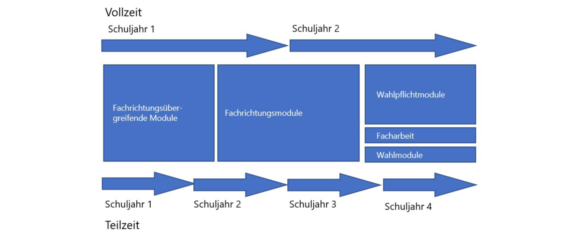 Die Ausbildung zur/m Staatlich geprüften Techniker/in kann in schulischer Vollzeitform (2 Jahre) oder berufsbegleitend in der schulischen Teilzeitform (4 Jahre) absolviert werden.